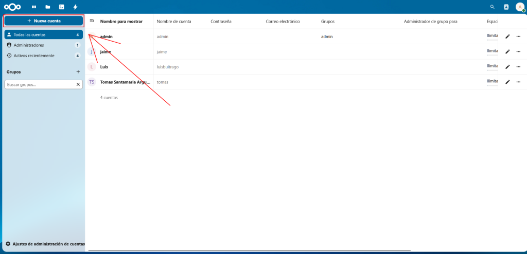 - Acceso de Administrador: El principal requisito es tener acceso a una cuenta con privilegios de administrador en la instancia de Nextcloud. Solo un administrador puede acceder al panel de configuración y gestión de usuarios para crear nuevos perfiles.