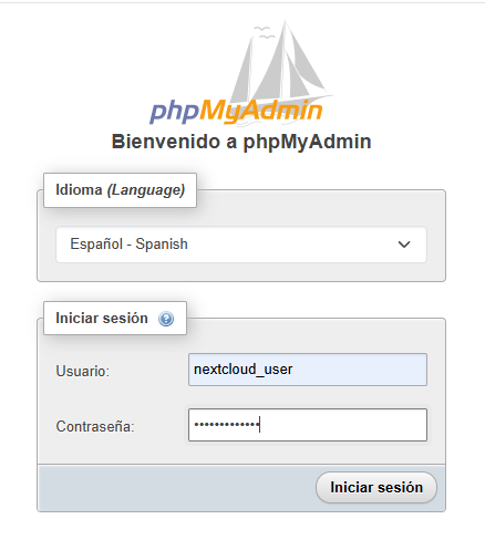 iniciamos sesión con las credenciales de un usuario que tenga permisos para gestionar la base de datos
